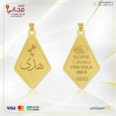 اسوارة مع قطعة ذهب دائريه 5جرام كتابة اسم عيار 24 قيراط