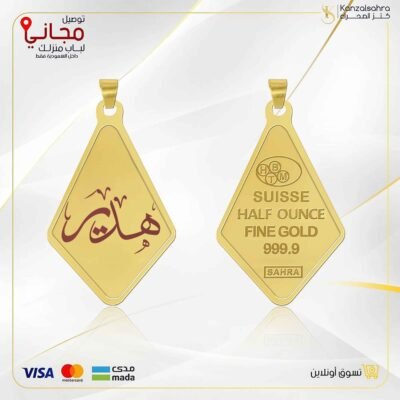 اسوارة مع قطعة ذهب دائريه 5جرام كتابة اسم عيار 24 قيراط