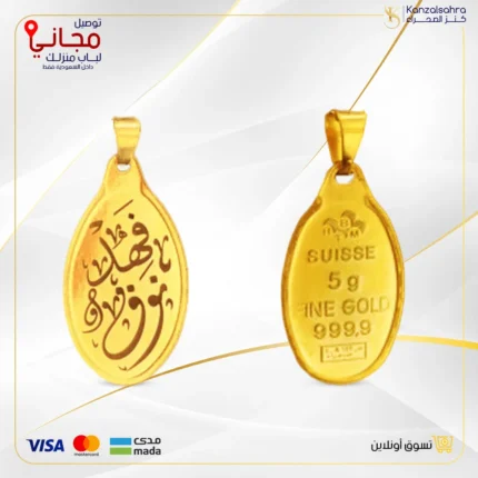 سبيكة ذهب 5 جرام دائري تعليقة كتابة الأسم عيار 24