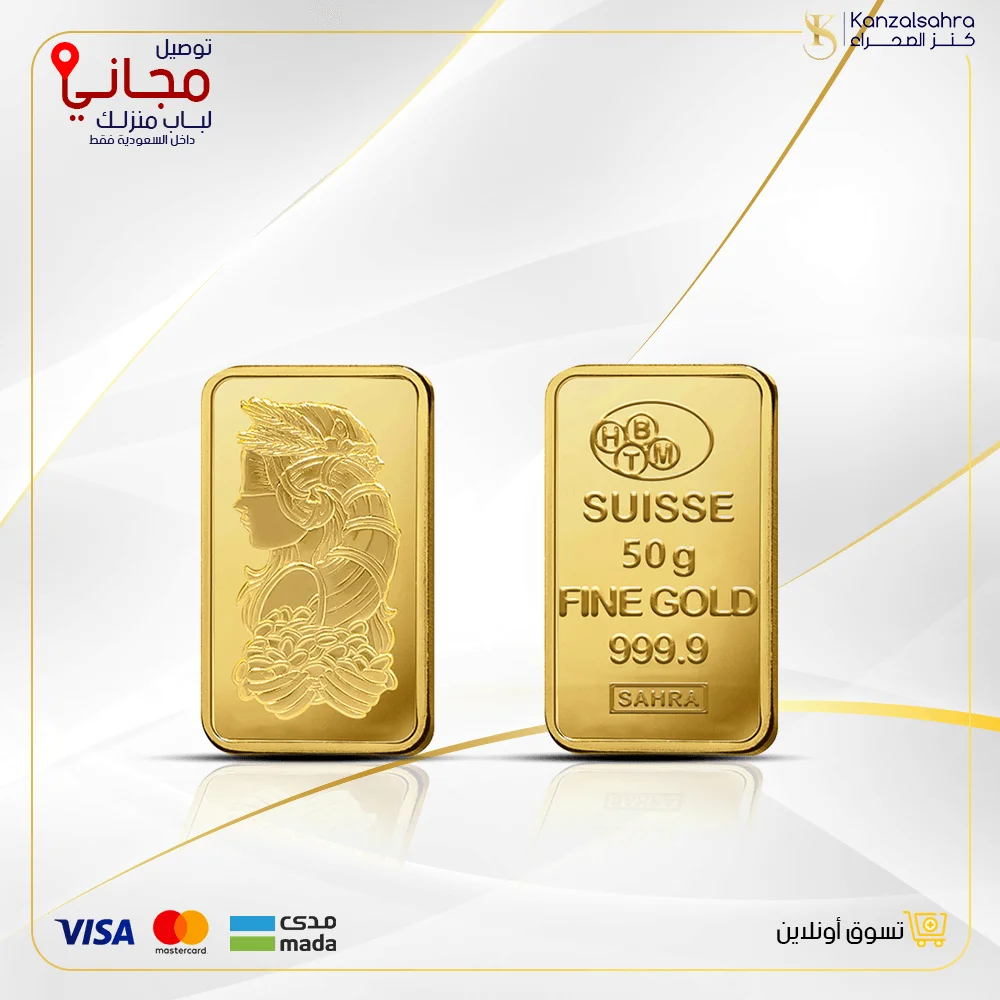 سعر سبيكة ذهب 50 جرام عيار 24 اليوم في السعودية